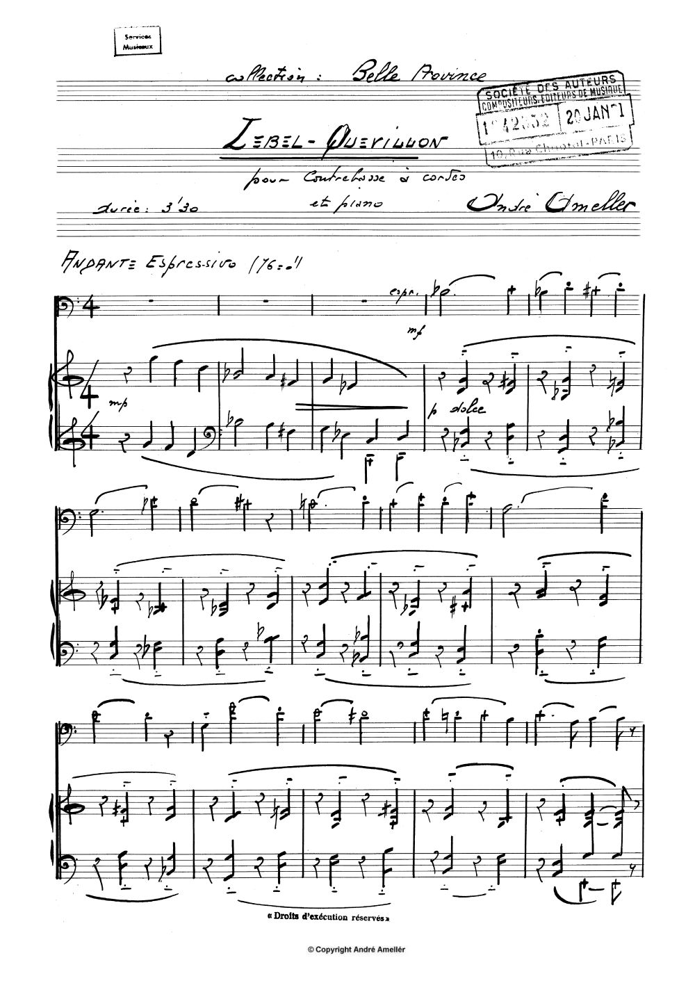 Excerpt of the score presented with the kind autorisation of the Editions Alphonse Leduc (Paris).